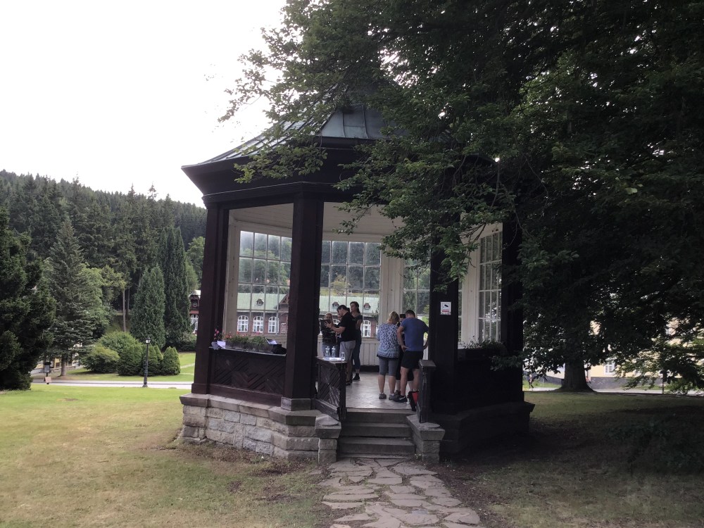 Při měření vydatnosti pramene jsme byli středem pozornosti lázeňských hostů a chuť pramene okusili pouze ti odvážnější.